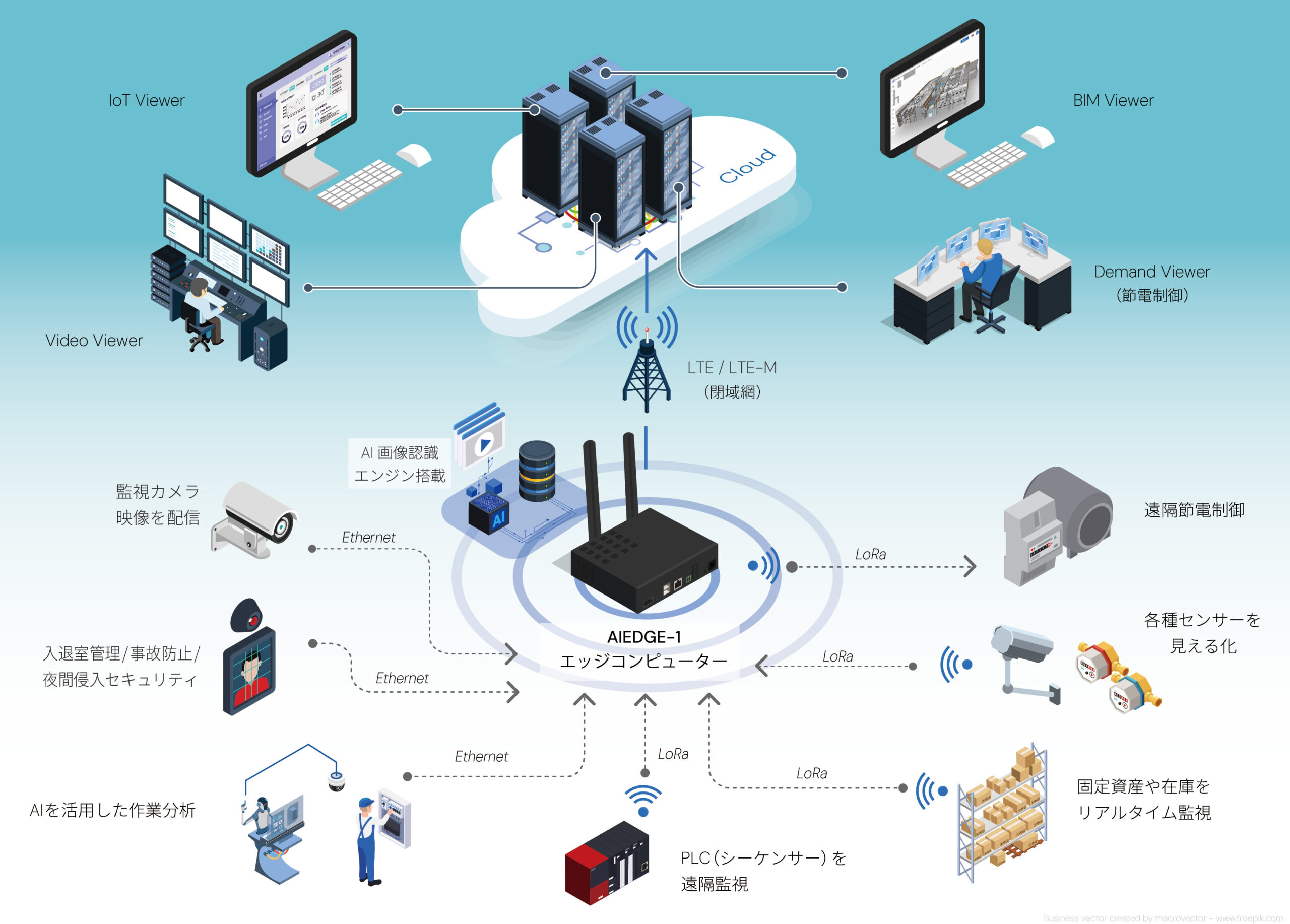 Access IoTプラットフォーム は、センサー、遠隔カメラ、AI画像認識を備え、AiBIMとシームレスに連携します。